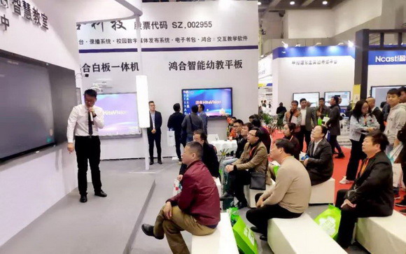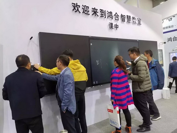在琳瑯滿目的展品中,鴻合科技的高科技智慧黑板吸引了眾多參觀者的目光。據(jù)悉,鴻合智能交互黑板采用全貼合工藝及納米電容觸控技術(shù),在保留粉筆書寫、多人觸控、多媒體教學(xué)等功能的同時(shí),還擁有諸多技術(shù)創(chuàng)新,比如將色域從72%提升至85%,還原屏幕真實(shí)色彩,為學(xué)生帶來真實(shí)“視界”;新增去藍(lán)光護(hù)眼功能,為師生打造健康綠色的學(xué)習(xí)環(huán)境。