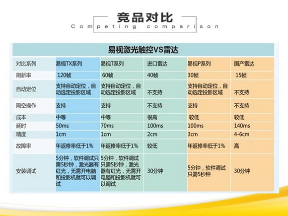 上海易視計算機科技有限公司成立于2002年,專注于圖像分析技術,激光觸控技術,獲得多項專利;公司主要產品:虛擬電子白板,觸控微投,激光觸控模組。其中電子白板產品出口至十多個國家,公司的激光觸控模組可集成到投影儀中使之成為可觸控的投影儀