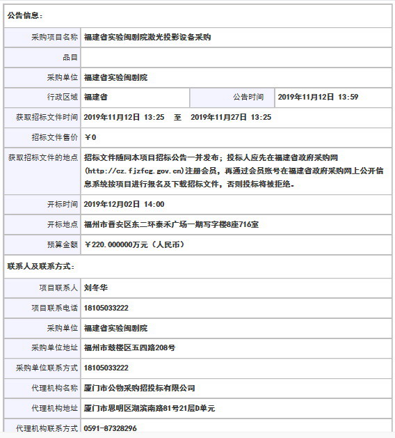 采購項目名稱: 福建省實驗閩劇院激光投影設備采購