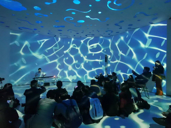 而這次展出《無去來處》以“藝術與科技”結合的形式在北京重現,從自然到科技,從實體到虛擬,從原本的空間維度拓展到更為豐富的多層次時空,東方中原倉豐科技在本次采用多角度投影Mapping,營造天光和室內光影,同步展現水中蟲洞光影,完美呈現了這場具有心靈沖擊的視覺盛宴。