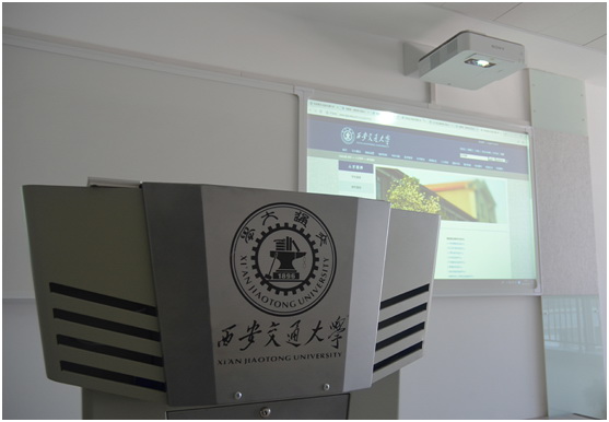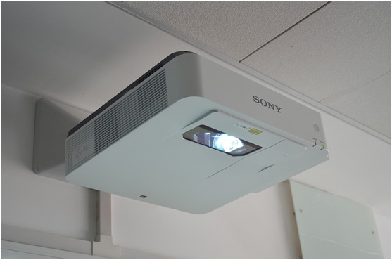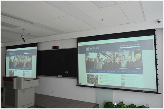 接下來到訪的教室安裝了兩臺VPL-U300WZ,在這個教室中,學生更像是圍繞著講臺,與老師距離更近,適合交流、互動比較多的課程。VPL-U300WZ超短焦優勢能夠解決安裝距離限制,支持100英寸大畫面投影,而且老師站于屏幕前也不會遮擋畫面,效果出色。