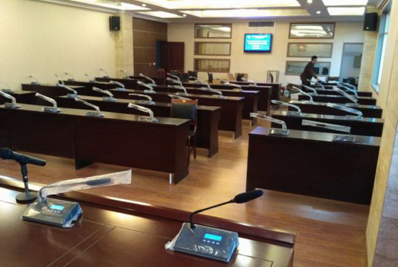 此次項目中主要用到啟拓(QITUO)數字網絡會議主機QT-G620M會議主機 (帶表決、簽到、攝像跟蹤等功能)一臺、數字網絡會議主席話筒(帶5.5寸電子桌牌)QT-B625 九支、數字網絡會議代表話筒 QT-B625D 四十一支、啟拓(QITUO)數字功率放大器QT-MS350 一臺、啟拓(QITUO)調音臺 QL08 一臺以及輔助音箱H08、無線手持話筒QT-U72M、VGA矩陣切換器 VGA0404 等其它會議設備若干臺(套)。