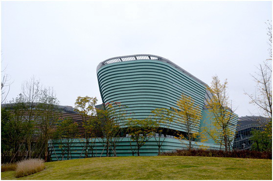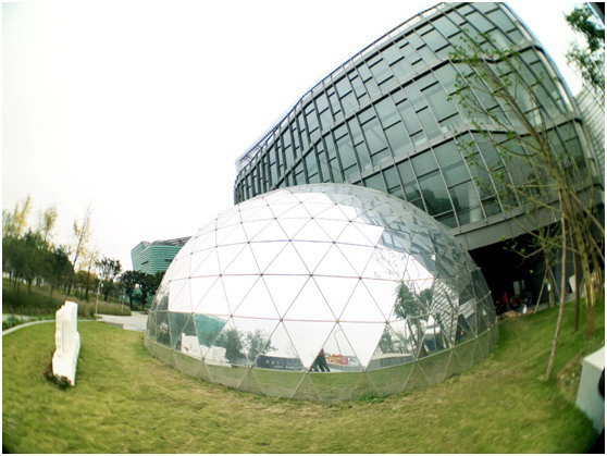 走近遂寧市文化中心,我們感嘆于時尚先鋒的建筑外觀,它由中國建筑設計院設計,是一座具有綠色建筑三星獎和中國建筑工程魯班獎的高水準文化中心。科技館位于整個建筑的北側,球幕影廳非常醒目,耀眼的反光玻璃外觀的半球型建筑,如同一顆明珠佇立。