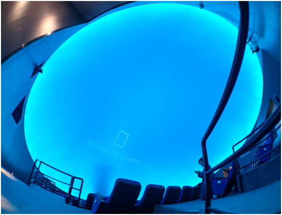 進入球幕影廳,巨大的穹頂屏幕出現在我們眼前,還未播放畫面時就以讓人感覺到宏大質感。據悉,這里的球幕直徑13.5米,由6臺索尼4K激光虛擬仿真投影機VPL-GTZ280配合VPLL-Z7008短焦鏡頭(電動變焦/聚焦,投射比0.8:1至1.02:1)拼融實現8K畫面。球幕影廳共設有72個座位,每一個進入這里的觀眾都能獲得震撼的觀感。