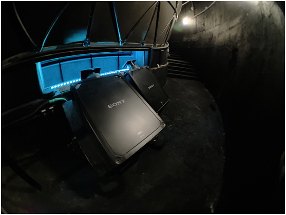 此項目的負責人表示:“遂寧市科技館的球幕影廳具有目前業界領先的高水準與高表現,6臺索尼4K激光虛擬仿真投影機安裝專業鏡頭,配合先進服務器和拼融設備,經過精心調校實現8K細膩真實影像,系統還內嵌完善的天文數據庫、科普數據庫,不僅可放映科教電影,還可作為數字天象儀,在文化教育與科普活動中發揮重要作用。”