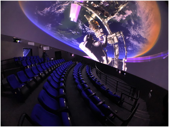 弧幕電影正式上演!播放的科教影片呈現宇航科技的發展變遷,星空宇宙在弧幕上緩緩移動,沉浸式環境讓人頓生失重之感,體驗非常奇妙;影片帶領觀眾近距離觀察各個行星,很多畫面的逼真質感讓人驚呼;相信來到這里的孩子們,肯定會對科學產生濃厚的興趣,對學習大有脾益,并開始關注宇宙、關注世界的奧秘與科技的創新。