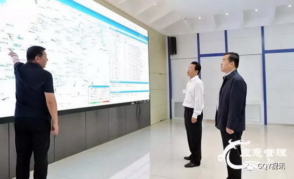 黑龍江省委書記張慶偉和應急管理廳長趙中超在GQY LED拼接屏前指導工作