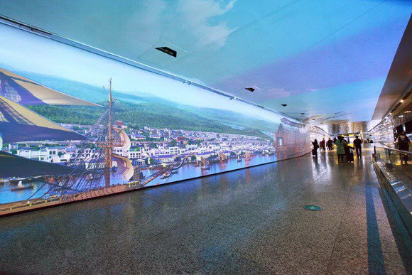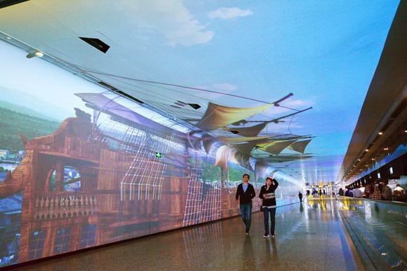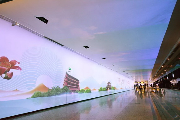 由鴻合工程顯示團(tuán)隊(duì)傾力打造的白云機(jī)場(chǎng)“時(shí)空隧道”,全長(zhǎng)約200米,利用54 臺(tái)激光工程投影機(jī)實(shí)現(xiàn)“動(dòng)靜結(jié)合、人景結(jié)合、虛實(shí)結(jié)合”, 是該機(jī)場(chǎng)首推的融媒體模式大型藝術(shù)體驗(yàn)新空間,在全國(guó)機(jī)場(chǎng)尚屬首創(chuàng)。