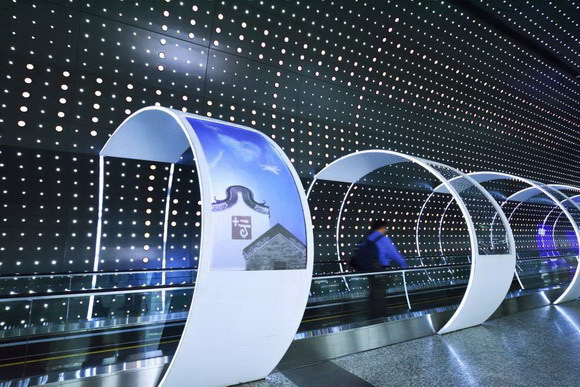 全程突出“云+”的概念,分為“云之‘家’‘夢(mèng)’‘心’‘城’”四個(gè)空間,整體以“云”為設(shè)計(jì)主元素,既與“白云機(jī)場(chǎng)”的“云”相呼應(yīng),又寓意飛機(jī)穿越云端,與未來“云時(shí)代”對(duì)話。白云機(jī)場(chǎng)相關(guān)負(fù)責(zé)人介紹,打造特色“時(shí)空隧道”,通過前沿技術(shù)帶來科幻特色體驗(yàn),一方面重在增加地方特色和機(jī)場(chǎng)特色;另一方面提升旅客出行體驗(yàn)。