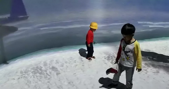 與“光影版”海浪沙灘相比,360環(huán)幕劇場——穿越馬里亞納海溝對迪恒的考驗又有所不同。