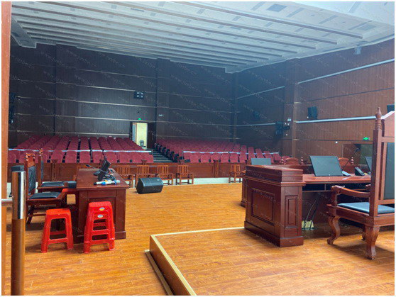 審判庭采用的視像跟蹤型手拉手會議系統,拾音真實、自然,支持多種發言模式和發言優先權限的設置,保障會議召開的有序性及時效性。此套系統與審判庭現場的視像、監控系統無縫對接,發言人開啟發言時,可全程同步進行錄音錄像,全方位保障庭審的順利開展。佳比專業擴聲系統實現整個庭審現場聲場分布均勻、音質清晰、穩定無明顯干擾的音頻效果。