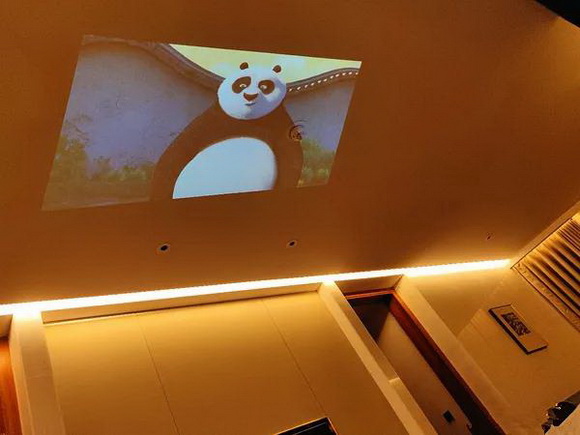 可能光說體會不出這個功能設計有多實用。舉個例子,一般人都是窩在沙發或者床上看電影,但是懶的時候都很想直接躺下來看。這時候只要稍稍旋轉一下堅果P3的機身,馬上就能將畫面投到天花板上了,再加上梯形校正功能,短時間畫面就能夠進行自動調節對焦,“臥室影院”瞬間打造完成,簡直就是懶癌患者的福音。
