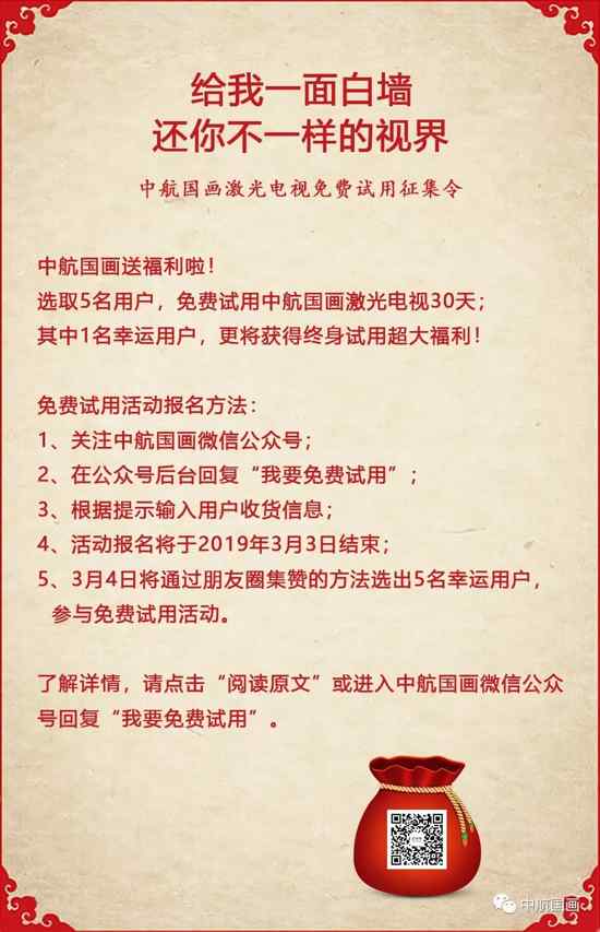 給我一面白墻,還你不一樣的視界——中航國(guó)畫激光電視免費(fèi)試用征集令