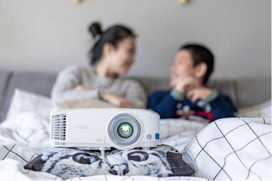 明基智能專業家用投影機外形小巧典雅,同時支持2D梯形校正,快速融入不同家居環境。是在家娛樂,家人相聚的必備良品。