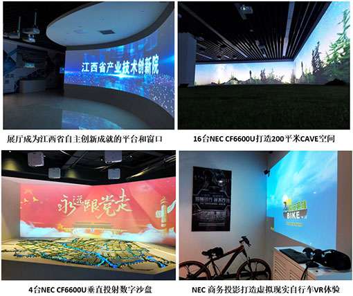 江西省科學院創新展示中心作為江西省大眾創新萬眾創新示范基地,是集中展示全省自主創新成就的平臺和窗口。在創新展示中心項目中,全球顯示行業領導品牌NEC采用30余臺液晶商務投影機,通過運用弧形投影、互動投影等先進投影技術,打造了集CAVE沉浸式全景空間、VR虛擬現實體驗館于一體的高科技展示中心,全方位展示了國家級高新企業孵化器的發展軌跡和技術創新成果。