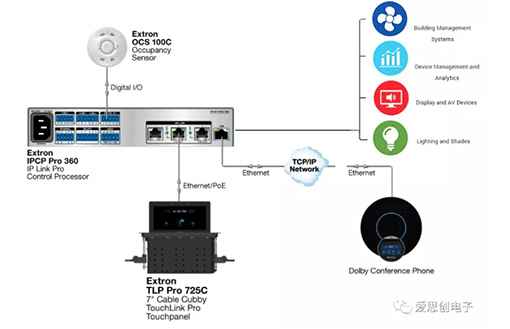 愛思創電子宣布 Extron 已與 Dolby 合作,將 Extron Pro 系列視音頻控制解決方案無縫集成至 Dolby 會議電話。未來您可以將 Extron 控制功能擴展至 Dolby 會議電話系統,實現現代會議空間內視音頻及會議的一體化控制。通過與 Extron Pro 系列控制系統集成,您只需輕擊TouchLink Pro 觸摸屏,便可輕松控制通話音量以及顯示器開關、窗簾和燈光等自動化功能。占用感應器也可被集成至這一自動化系統,當感應到與會者進入會議室時自動開啟顯示器。該解決方案重新定義了極簡的系統控制,同時也實現了對室內其它視音頻設備輕松、便捷的集中控制,最終為用戶帶來卓越不凡的協作體驗。