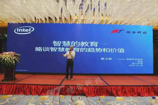 作為鴻合科技多年友好戰略合作伙伴,Intel一直為鴻合提供著技術及資源支持。大會現場,Intel物聯網市場銷售部客戶經理陳文勝針對當代智慧教育的趨勢和價值進行了詳細解讀。并在現場發言表示:“Intel和鴻合不斷進步的背后離不開在坐并肩作戰合作伙伴的支持與信任。未來,Intel與鴻合將繼續強強聯手,與眾多合作伙伴們互惠共贏,共同助力中國智慧教育行業發展。”