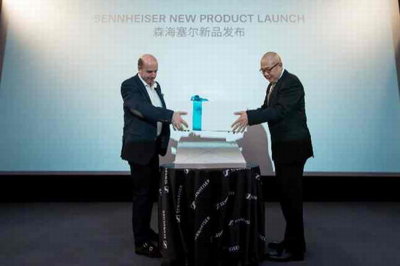森海塞爾大中華區(qū)董事總經(jīng)理Pierre Eloy和佳聯(lián)公司董事陳咪沙一起為新品揭幕