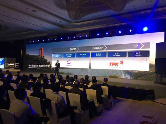 TPK謝立群執(zhí)行長,于京東方舉辦的“交互式電子白板解決方案發(fā)布會”上,報告TPK和Cambrios的納米銀觸摸屏解決方案