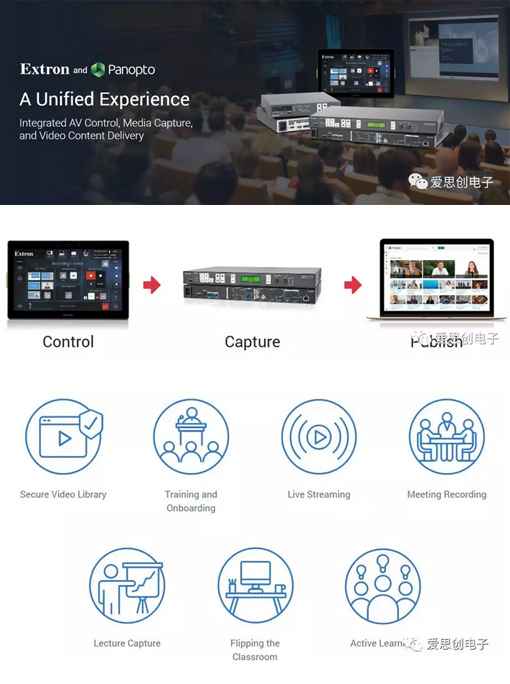 Extron 與 Panopto 的合作伙伴關系首次將獲獎的視音頻控制和媒體采集及業界領先的企業視頻內容管理、交付和協作軟件服務融合在一起,可謂實現了業界首個統一的解決方案。