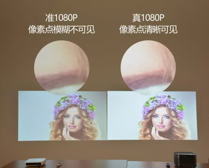 然而0.33DMD芯片,受到尺寸的限制,最多只能分布92萬個微鏡,真實物理分辨率是720P,所以G7很有可能是加上了高速抖動的技術,也就成為了行業內戲稱的“抖一抖1080P”。真實1080P投影,需要匹配更高流明以上的亮度才能呈現出較理想的效果。所以在這種情況下,建議大家優先考慮亮度流明,選擇像當貝D1這樣比較真實靠譜的投影儀為好。