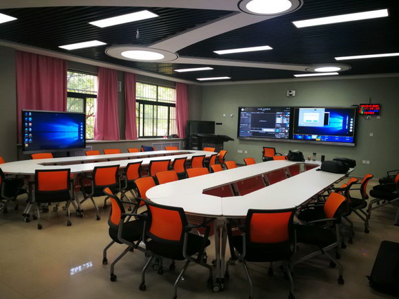 此外萊拓智慧教室重新構建教學環境,進行分組式圓桌方式,采用“1+4”或者“1+6”模式。“1”代表老師區域,有獨立的大屏顯示和操控設備;“4”或“6”代表學生分組區域,4組或6組,學生有小組顯示設備和獨立電腦。智慧教室采用討論型、互動式教學模式,也是翻轉課堂模式的一種。學生以自主學習,分組討論形式進行;老師作為教學指導,主持課堂;學生進行思考式、討論式學習,老師采用引導式、啟發式教學。老師通過控制面板進行推屏、調屏、廣播和同屏對比等操作,達到主持學習的目的。