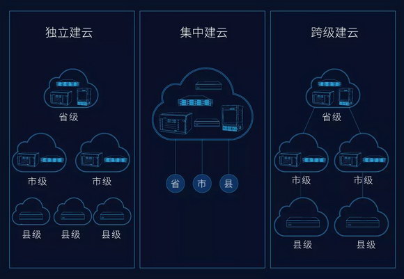 集中建云,上下級集中組建云,共用一個資源池,負載均衡,提升資源利用率,對出口帶寬要求較高,適合部署在大型數據中心。