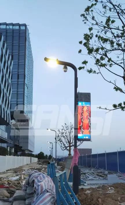 上海三思中安創谷科技園多功能LED路燈,采用嵌入式光源模塊化設計,性能穩定可靠,安裝維修便捷,自主研發的智能調光控制系統,更可實現LED路燈多級調光,高光效、低光衰的特點較傳統光源可以減少60%以上的能耗。