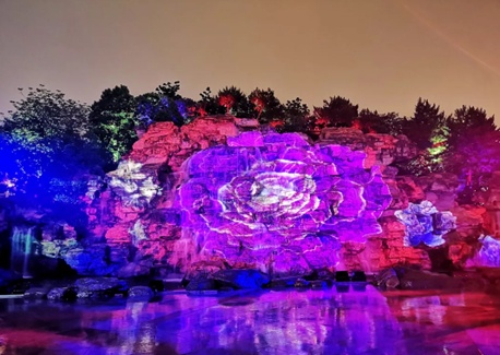本次項(xiàng)目投影的內(nèi)容包括中華文化中經(jīng)常出現(xiàn)的花草元素,例如牡丹、繁花、蝴蝶、神鹿等,以優(yōu)美的景致展現(xiàn)了自然的美麗與寧?kù)o。憑借贏康的大師級(jí)投影設(shè)計(jì),影像內(nèi)容與石園飛瀑異曲同工地融為一體,靈動(dòng)的畫面為夜下的大唐芙蓉園增添了一抹瑰麗的亮色。