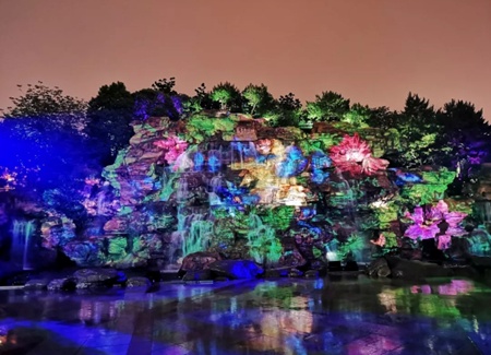 銀橋飛瀑寬 35 米,高 16 米,是這座古城西安里風(fēng)景如畫的公園中的聞名勝景之一,每天吸引數(shù)千名游客前來(lái)觀賞游玩。流光溢彩的瀑布投影由4臺(tái)科視 Christie D20WU-HS 1DLP® 激光投影機(jī)呈現(xiàn),它們均由科視在中國(guó)的長(zhǎng)期合作伙伴贏康科技 安裝和測(cè)試,而景點(diǎn)的投影設(shè)計(jì)也由該公司負(fù)責(zé)。