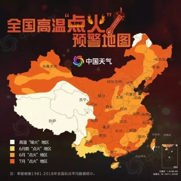 全國高溫“點火”預警地圖上線,你家離全熟有多遠?中國天氣網統計了近38年來全國各地一年中高溫最集中時段。告訴你高溫火爐一般何時“點著”、何時“熄滅”,讓你做“火爐”里最美味的仔。