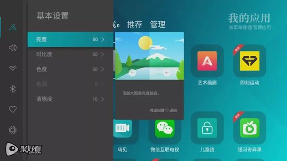 方法三:把電視畫面選項里面的亮度對比度清晰度按照自己喜歡的方式下調后會發現電視其實一點都不熱,這是從內部降低功率,減少熱量的產生。