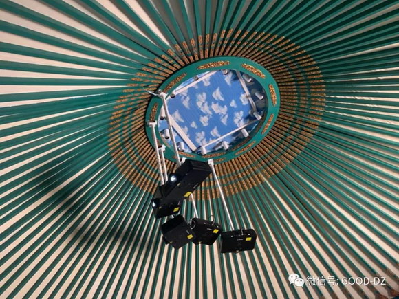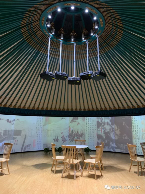 1、此板塊的弧形融合系統(tǒng)采用了5臺(tái)6000流明ROLY樂(lè)麗激光工程投影機(jī),弧形融合,融合帶為單臺(tái)投影機(jī)畫(huà)面的19%,配置一塊12.5*2米的投影硬幕。