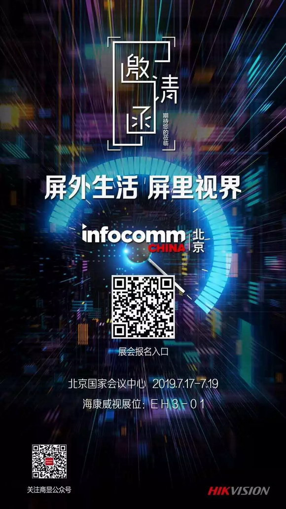 2019 北京 InfoComm China 將于7月17日-7月19日在北京國家會議中心召開,這是專業視聽領域的一場盛會,包括海康威視在內的多家全球知名企業應邀參展。