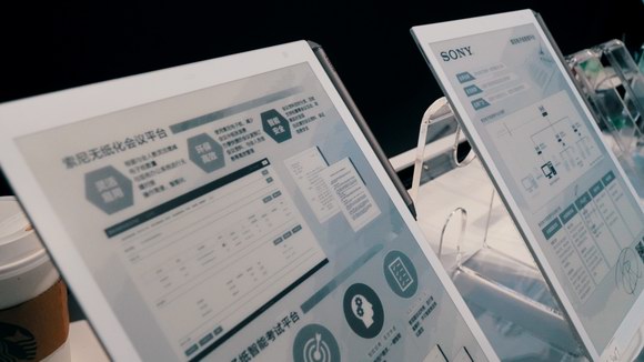 除以上的顯示解決方案,索尼無紙化會議平臺也在InfoComm上再次現身。索尼無紙化會議平臺是索尼針對無紙化會議這個應用場景,結合索尼電子紙產品的特性而開發的一套解決方案。與以往傳統無紙化會議方案不同,該方案具有更高的靈活性,可以根據開會需要增減設備數量;墨水屏的顯示技術,更適合會議資料的閱讀,配合手寫筆可以帶給用戶更接近于真實的書寫體驗。通過該平臺,用戶可以將Word、PPT、PDF等格式的會議資料上傳至系統中進行統一管理,并可以添加參會人員進入到會議中。會議開始后,平臺會自動推送會議資料至參會人員的電子紙設備中;同時,參會人員可以使用電子紙完成投票、提交等交互功能,投票結果會在系統中進行實時的呈現;會議結束后,可自動將會議資料全部清空,極大的保證了會議資料的保密性。此外,基于此平臺,我們還能為用戶提供定制化版本,更加貼合用戶的個性化需求。