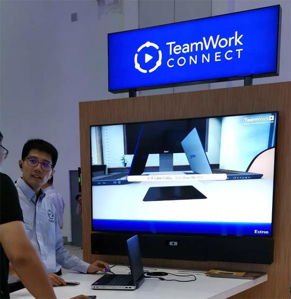 Extron 構建的 TeamWork 和 TeamWork Connect 系統強大而易用。只需將 Show Me 電纜連接至平板電腦或筆記本電腦,系統即自動開啟。按下Show Me 電纜上的 Share 鍵,選擇顯示該路輸入。可為完整的 BYOD - 自帶設備環境添加可選的無線協作式網關和匹配顯示器寬度的 Sound Bar。還能集成可選的運動感應器,無需用戶干預就能自動開啟和關閉房間系統。