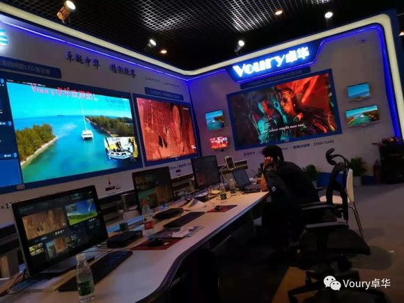 Voury卓華作為業(yè)界業(yè)界領(lǐng)先的大屏幕顯示及拼接控制整體解決方案提供商,本屆展會主打應(yīng)用場景現(xiàn)場模擬,現(xiàn)場共展出包括SMD封裝LED顯示屏、COB封裝LED顯示屏等在內(nèi)的多套拼接大屏幕。Voury卓華有多套顯示屏分別模擬不同應(yīng)用場景進(jìn)行展示: