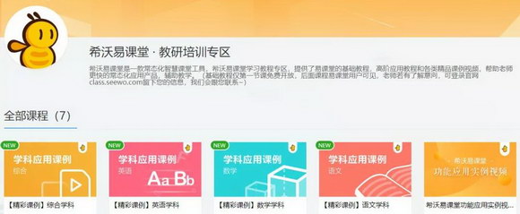 豐富的網絡學習資源——希沃易課堂教研培訓專區能幫助老師們利用課余時間提升應用水平。目前教研培訓專區主要包含功能操作類課程、功能應用案例、各學科全國優秀實例課等。老師只需要利用課間休息等碎片化時間,即可完成學習提升。