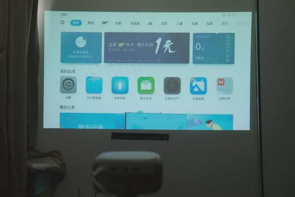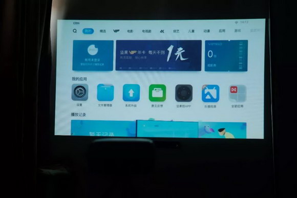 初次開機進入系統時,系統會提升用遙控進行對焦畫面。通過GIF圖可以看出,對焦不用幾秒。堅果微果H6搭載了基于安卓深度定制的堅果OS 4.0系統,在資源方面內置了優酷百萬影視資源,最討喜的一點就是還可以自行安裝其他影視類APP,在市場同類產品中也比較突出,進一步增加這臺投影的可玩性。