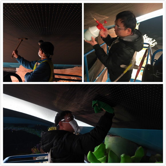 以珠海長隆國際海洋度假區為例,為了保持景區招牌——天幕的完美顯示效果,會定時邀請臺達為屏體進行一次整體的維護和清洗。不同于傳統的清洗工程,臺達工程師采用定制化學配方的屏體清洗溶液,能有效去除油漬、灰塵,以及附著的蜘蛛網,以此讓屏體永葆最初的光彩。