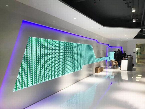 高清細膩,顯示效果卓越,其采用的就是聯(lián)誠發(fā)顯示屏P2.5。這塊顯示屏依墻面預留空間勾勒出的獨特造型,以簡潔大方、品質為上做基調,將實用與美感完美融合,使“美”的元素貫穿其中,視覺廣美感佳,強化及提升了空間的認同感。