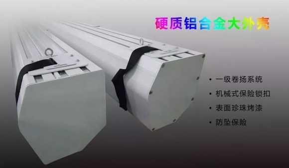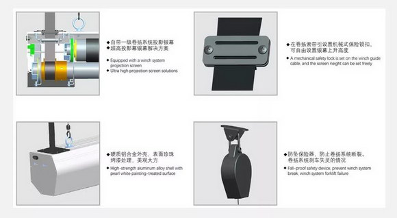 • 電動(dòng)銀幕內(nèi)置同步雙卷?yè)P(yáng)系統(tǒng),多重安全保護(hù),運(yùn)行平穩(wěn)順暢,安裝便捷、高效;