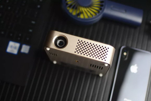 這款投影儀的重量為480克,重量輕而靈活,可以隨意攜帶,29毫米厚的機身又輕又薄,大約相當于成人兩根手指的厚度,114毫米寬的小尺寸,纖細的女孩一掌托住。纖薄的機身,能夠帶來的不僅僅是便攜,同時也會帶來一個很好的質感。