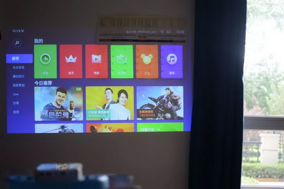 下面的這兩張圖片是在白天時候拍的,窗外還是陽光明媚,這時候你就能看到小小投影儀的亮度魅力。