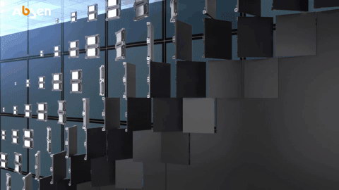 天幕懸掛在天花板面朝下,安全穩固第一。 艾比森N2.5超輕平板示結構,比傳統產品減重25%以上,厚度減少35%以上,在安裝過程中在每個LED模組與箱體之間再增加4個額外的螺絲釘,為LED屏幕增加了多一層安全保障。