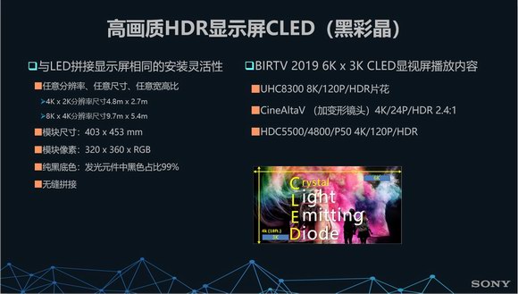 Crystal LED“黑彩晶”顯示屏再次來襲。這塊由索尼自行研發(fā)的Crystal LED拼接而成的屏幕將用于展示原生4K內(nèi)容、8K內(nèi)容,和2.4:1電影內(nèi)容,集中展現(xiàn)索尼超