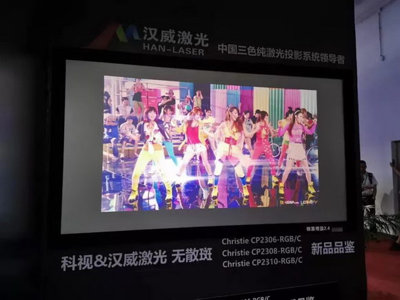 這是因為漢威激光作為科視唯一合作的激光光源品牌,與科視合作推出的Christie CP2306/08/10-RGB/C系列產品中融合了漢威激光新一代純激光RGB集成方案。首先,在散斑消除方面,采用漢威激光10年復合消散斑技術沉淀的最新重大研發成果——RGB激光多自由度散斑消除技術來消除散斑。另外,基于科視Christie CP2306/08/10-RGB/C平臺的新一代純激光RGB激光光源,在滿足Rec.2020大色域,超高的對比度、更生動的畫面層次感。同時,系統穩定性和節能性方面均有更好的表現力。此外,本次展會采用了我們與韓國司貝特倫聯合研發的RGB激光專用銀幕,完全杜絕太陽斑效應,無論是RGB色彩還原度、銀幕對比度,畫面清晰度和畫面可視角均遠遠超過RGB激光在傳統金屬銀幕上的表現力。