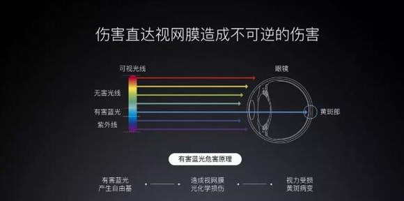 波長處于400nm-460nm之間具有相對較高能量的短波藍光,能夠穿透晶狀體直達視網(wǎng)膜,引起視網(wǎng)膜色素上皮細胞的萎縮甚至死亡。光敏感細胞的死亡將會導致視力下降甚至完全喪失,這種損壞是不可逆的。但藍光并不都是有害藍光,波長處于460-500納米之間的長波藍光具有調(diào)整生物節(jié)律的作用,睡眠、情緒、記憶力等都與之相關,對人體反而是有益的。