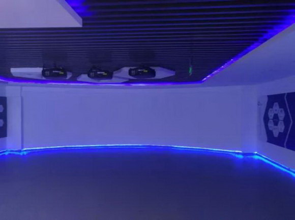 石墨烯創(chuàng)新中心展廳利用數臺視美樂激光投影機,設計了9*2.8米的融合弧形巨幕投影和全息投影解決