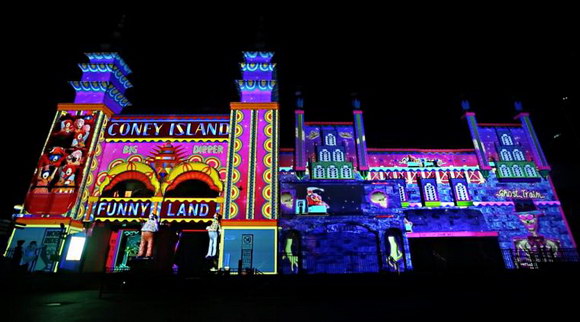 名為“The Spirit of Fun”的聲光表演詮釋了這個深受游客喜愛的游樂園的悠久歷史和迷人魅力,極富戲劇性的表演感人至深。該視覺盛宴由科視Christie 的澳大利亞合作伙伴 The Electric Canvas(TEC)設計和執行,使用六臺科視Christie Boxer 2K30 投影機在 33 米的建筑立面及其塔樓和尖頂上進行投影。在大型活動策劃與實施領域久負盛名的 TEC 將游樂園的藝術作品、人物和靈魂刻畫得栩栩如生。